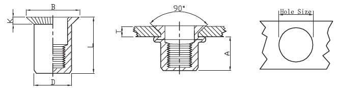 Home / Mga produkto / Mga bulag na rivet nuts / Countersunk head round body rivet nuts / Countersunk head round body plain rivet nuts / Bakal countersunk head round body plain rivet nuts sarado end type